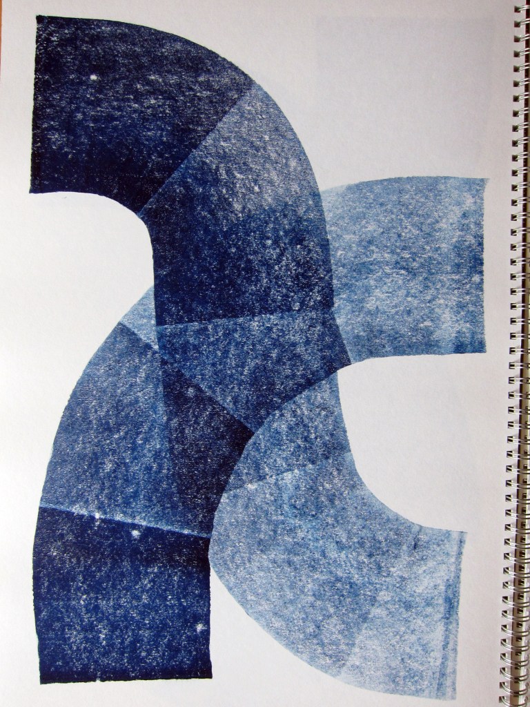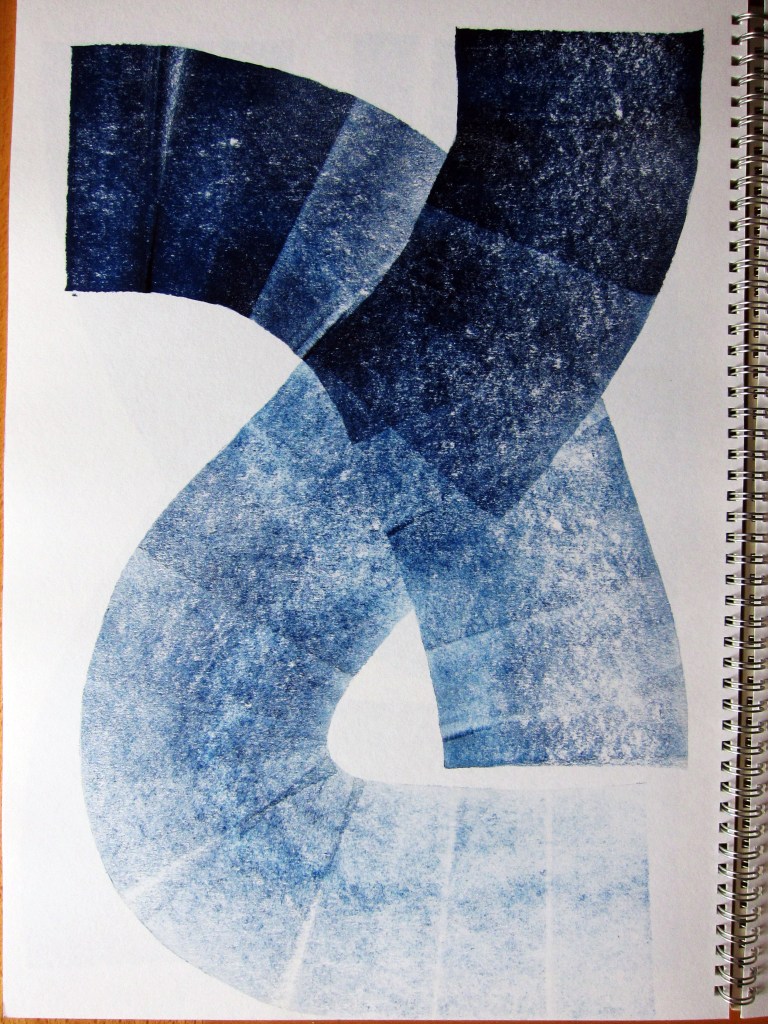 Then I did another, thinking about the paths that two people make in life and how an overlapping area immediately creates darker and more intermingled tones where textures are rubbed against each other and tones are deepened, directions are reversed and previous intensions are blurred…listening to Mahler’s Third Symphony on Radio 3, I feel that uncanny synchronicty of sound and shape that makes an idea more real.