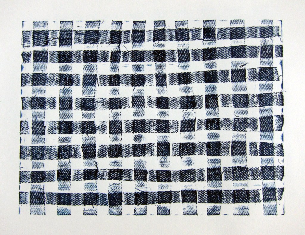 These collagraph prints which will be exhibited with the ceramic work in the Elsewhere exhibition in Dumfries, are made from real strips of old jeans which are cut and stuck and inked and pressed into paper to leave behind an imprint of their textures…from loose ragged curves of faltering lockdown social encounters to the nearer normal grids of social connections we now experience. But for how long, we are wondering…