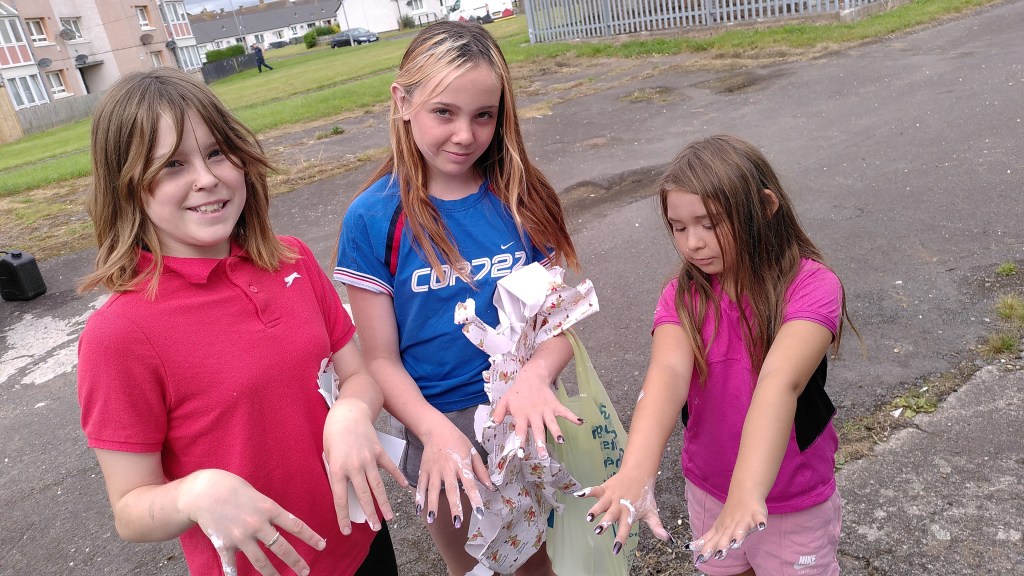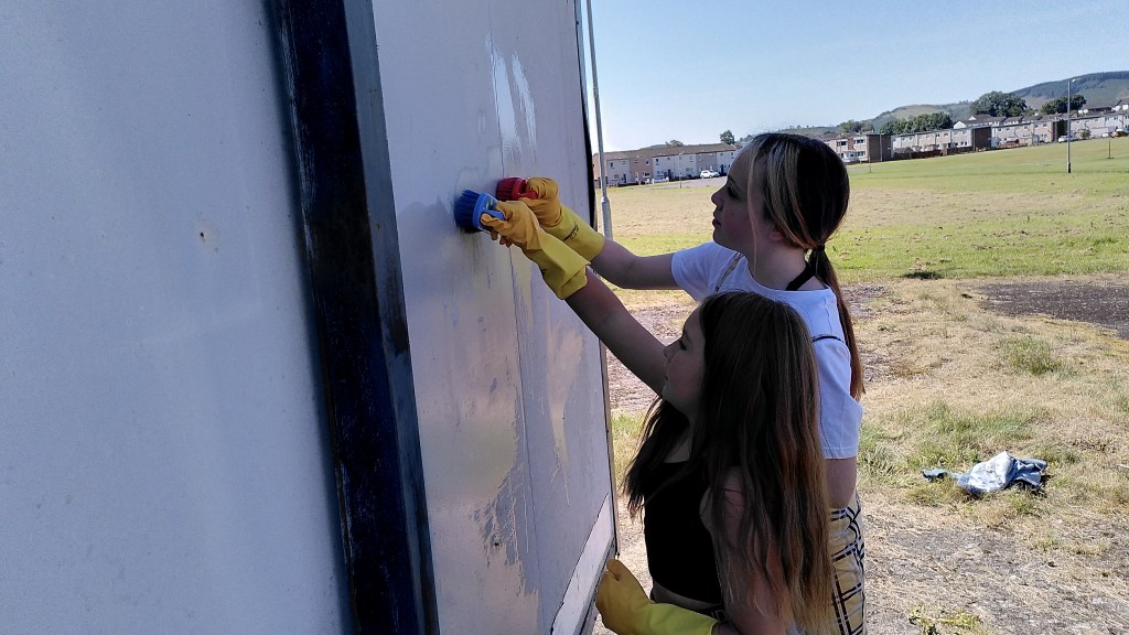 It must belong to the community more than to us individual artists. Or at least on an equal footing, as we are a part of the community. This sounds ironic as in a sense we made it happen, but when you think about it, everybody made it happen – from our initial meeting with Lynsey in the concrete yard outside her block as the starting point of actually meeting the community. Or maybe before that when we met Angie and the team at LIFT. Or even before that when we were interviewed for the job and we met Angie then on the panel. Or was it when I visited the the area of Lochside myself before the interview and felt strangely at home there before I knew anything about it? I think the project belongs to Lochside and we all need to know our individual roles within that dynamic truth.