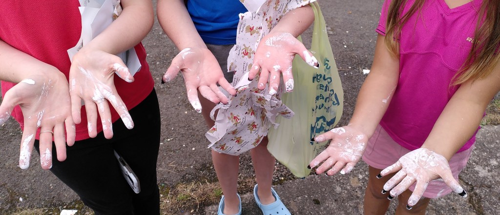 The painting crew show off their nails (and birthday wrapping paper) – great work guys