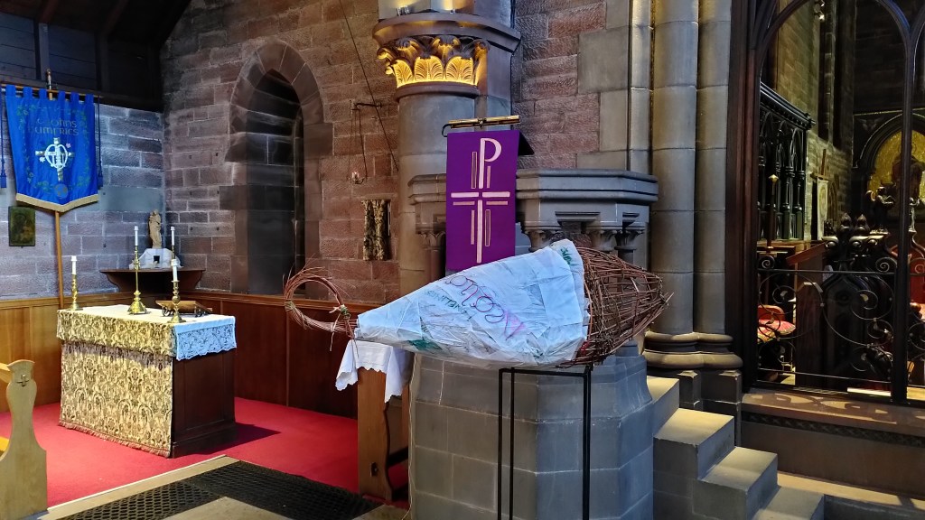 Working with a different community over the Lent period leading to Easter, I was part of a project to bring symbolism and mystery into the worship setting at St John’s church, Dumfries. Working with other members of the Quartz creative group attached to the church, my job was to create a fitting conclusion to the six-week congregational project.